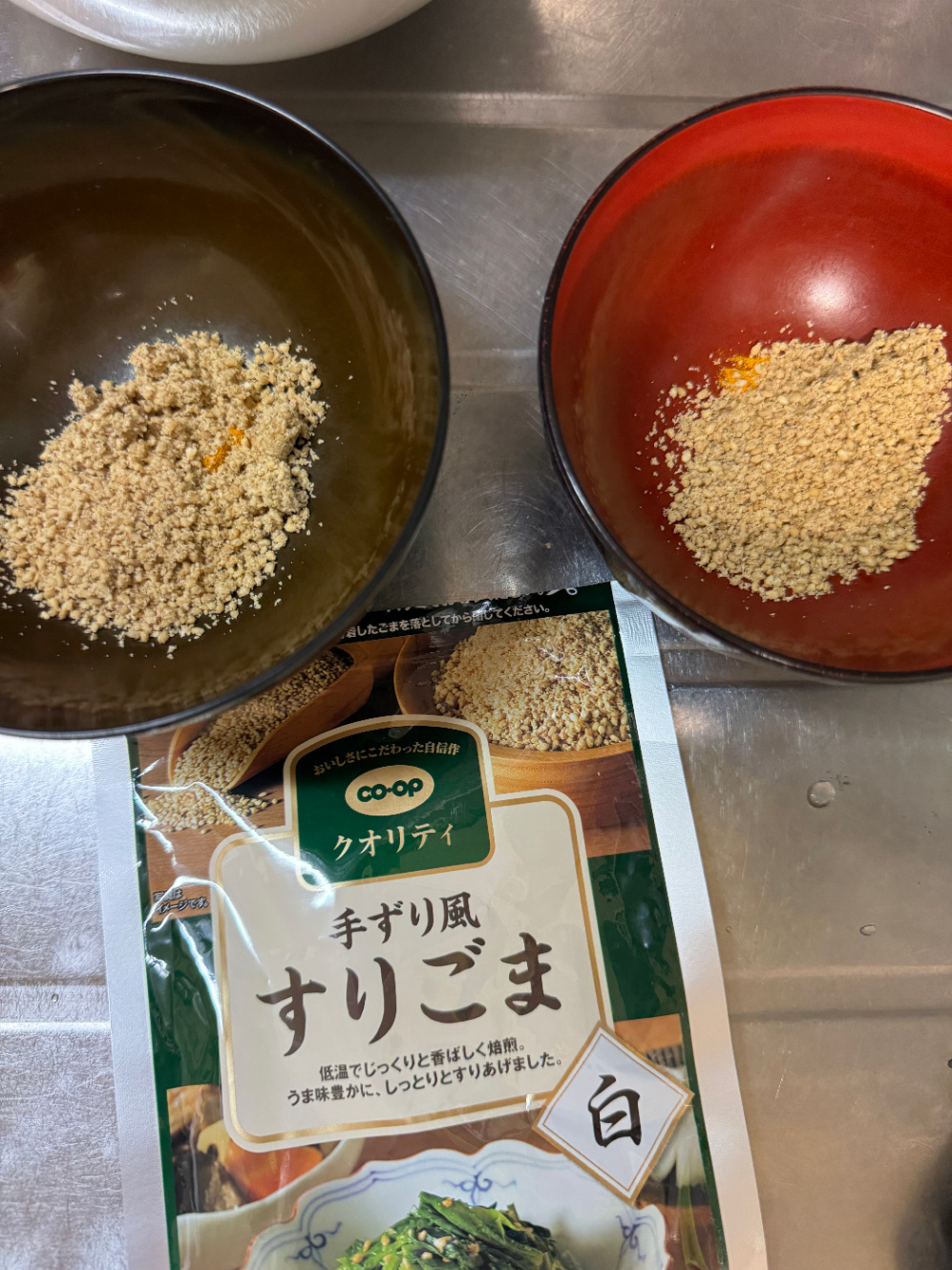 すりごまを大さじ1ずつ入れる。