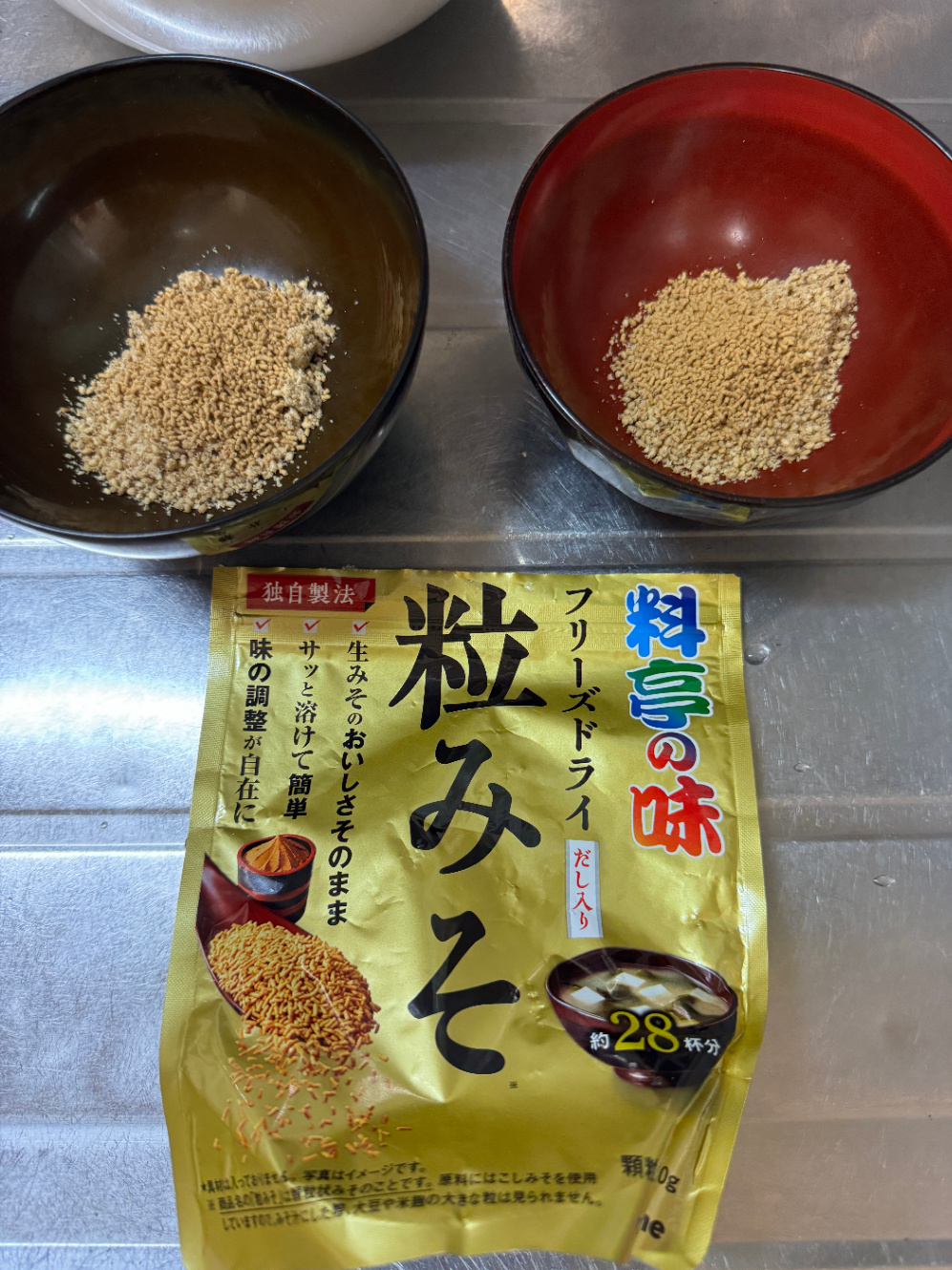 これで汁ものの準備はおしまいで、あとは食べる直前に湯を150mlずつ注ぐ。