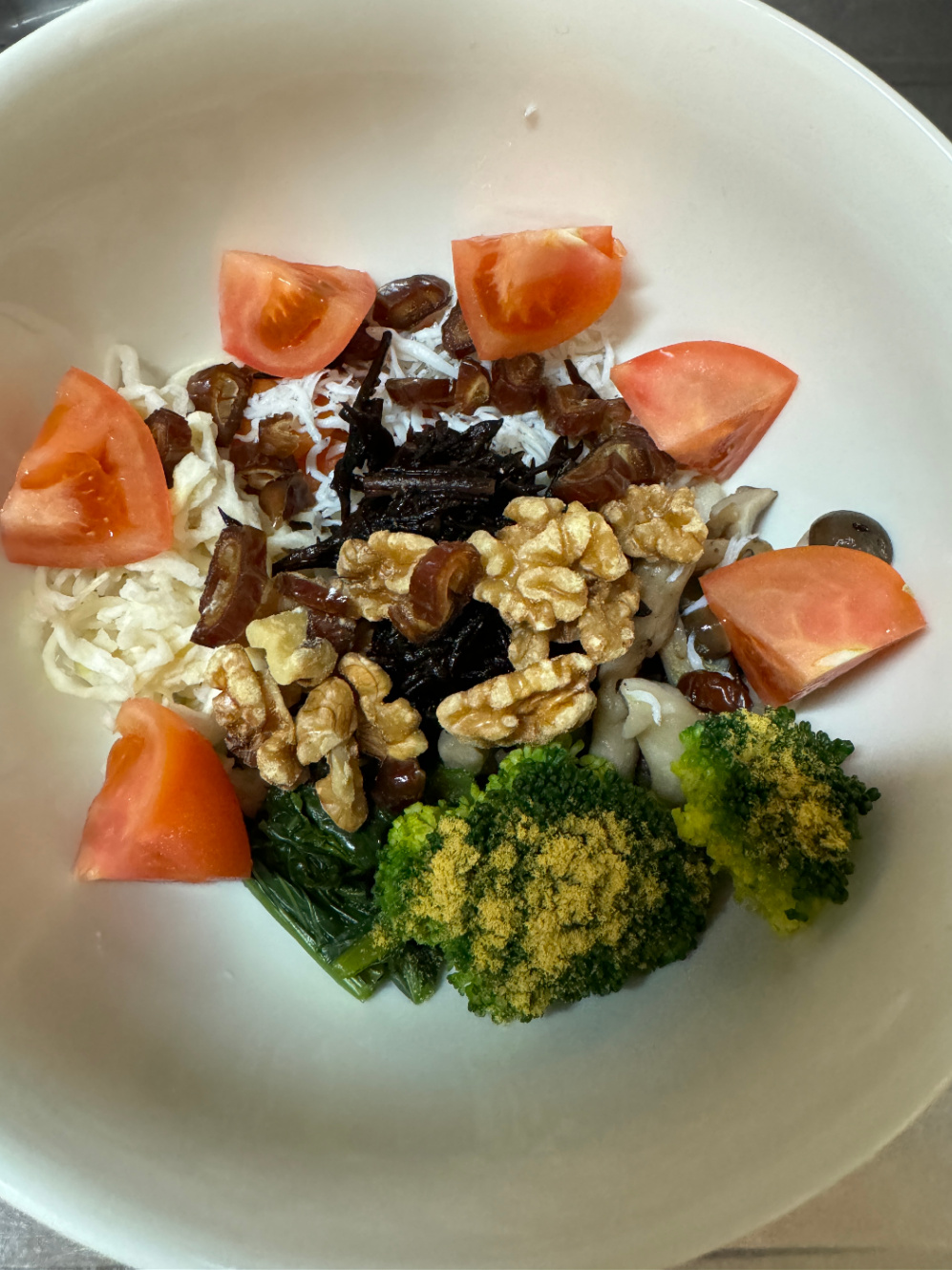 ブロッコリにからし粉をかける。