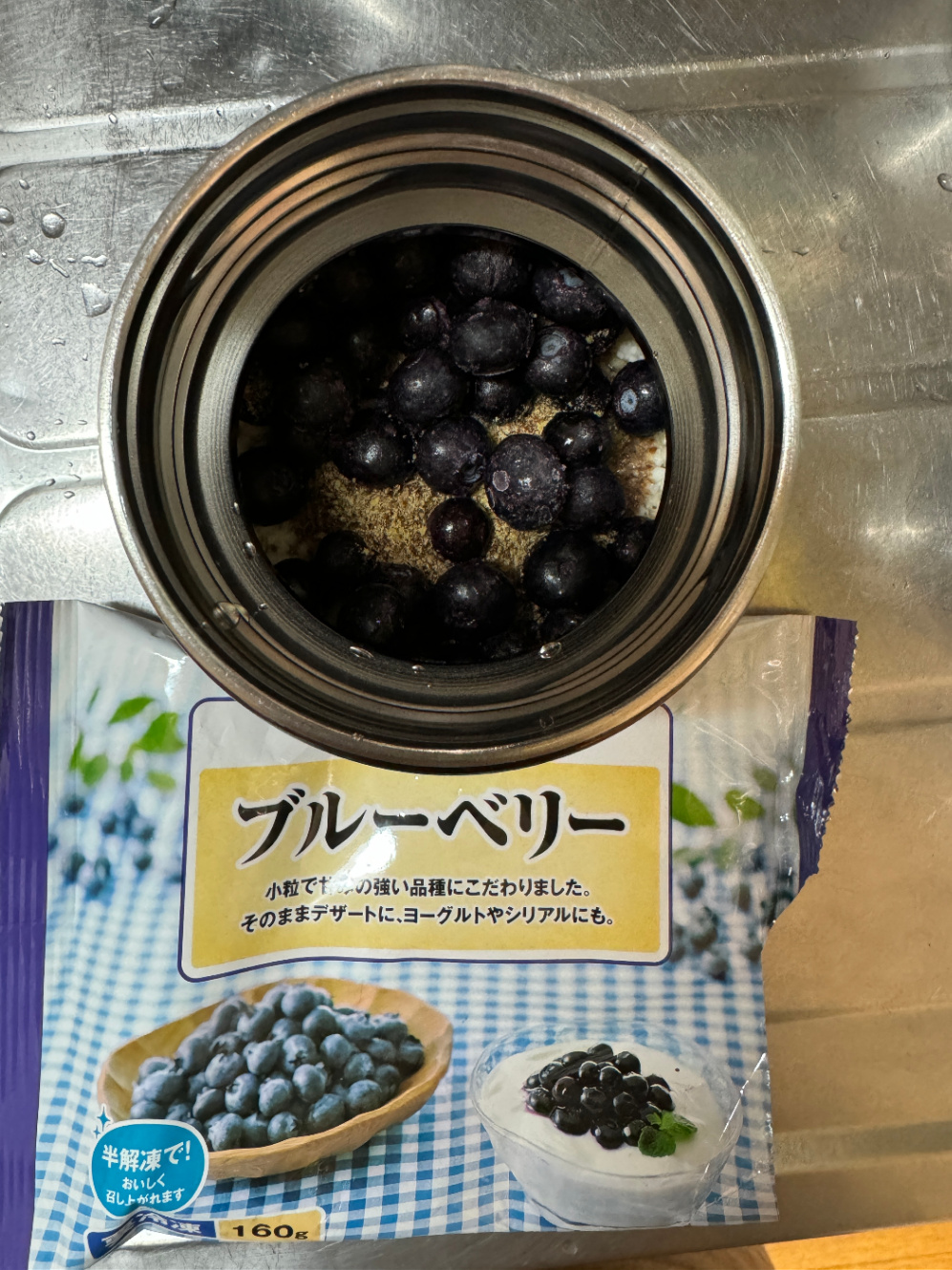 冷凍ブルーベリーを入れる。